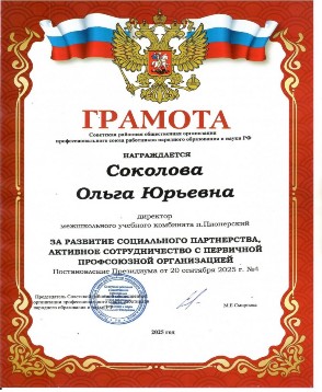 Соколовой О.Ю. Конкурс профессионального мастерства «Руководитель года Советского района - 2026»